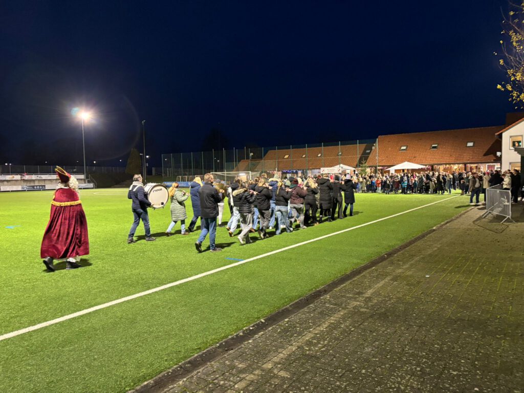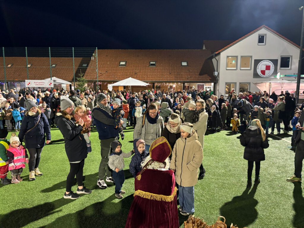 Nach dem Spiel erschien dann der Jugendspielmannszug in Begleitung des Nikolauses. Bei Weihnachtsliedern konnte der Nikolaus dann rund 200 Kindern eine bunte Nikolaustüte überreichen.